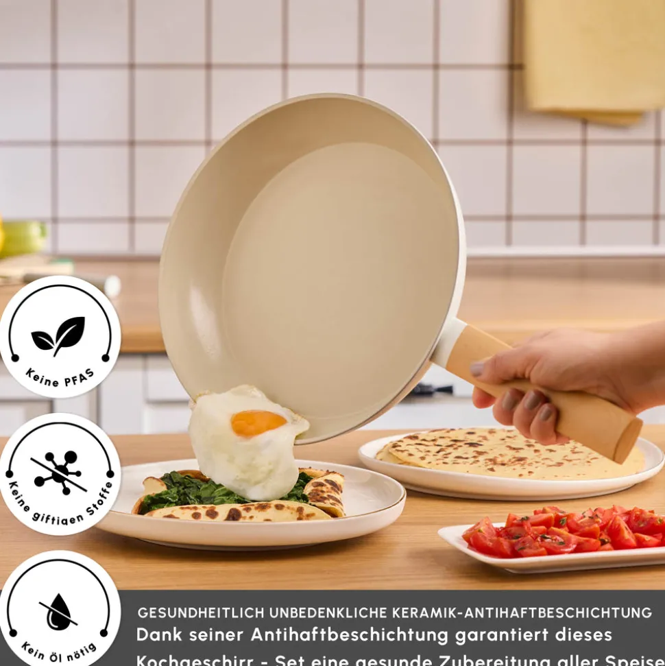 Karaca Swiss Crystal Almond Cream, Pfannen Set, Induktion