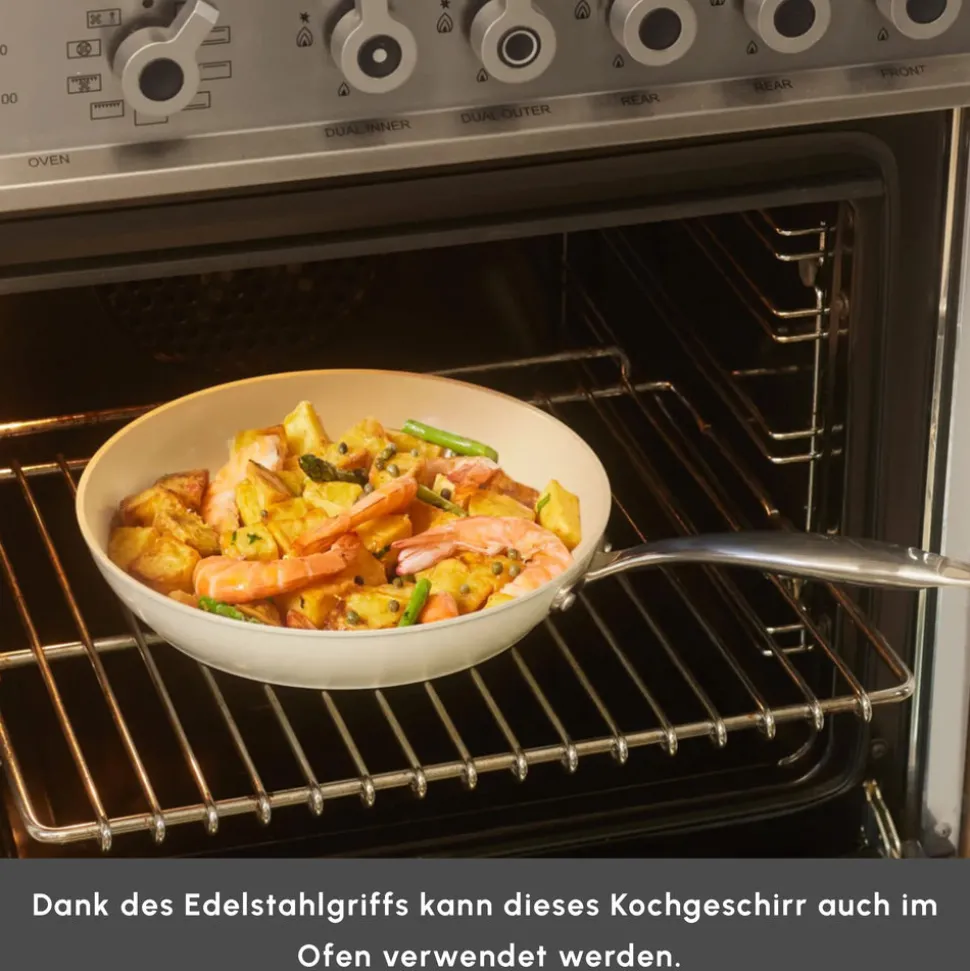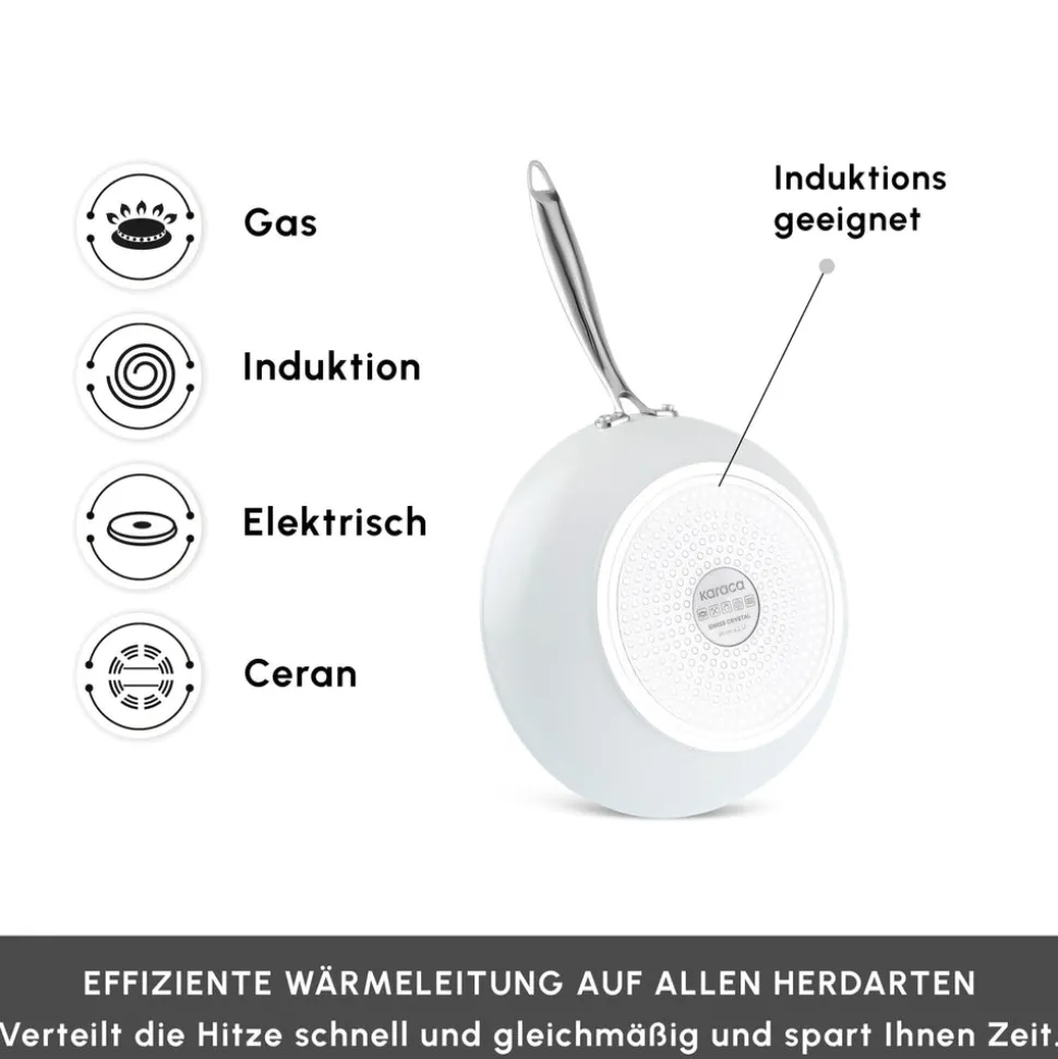 Das Karaca SwissCrystal Pfannenset, das seine Stärke aus der antihaftbeschichteten SwissCrystal-Oberfläche bezieht, ermöglicht Ihnen die praktische Zubereitung verschiedenster Gerichte – wie Eier, Fisch und Hähnchen – ganz ohne Öl. Die Antihaftbeschichtung wird mit Schweizer Kristallen hergestellt und enthält keine gesundheitsschädlichen Chemikalien wie PFAS.