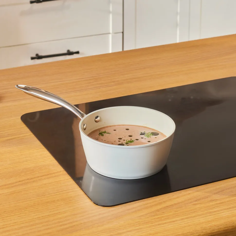 Karaca Swiss Crystal Almond Cream Stielkasserolle mit Edelstahlgriff 18 cm