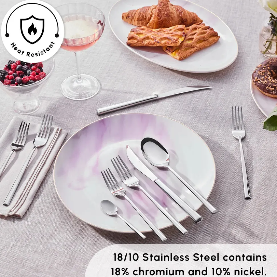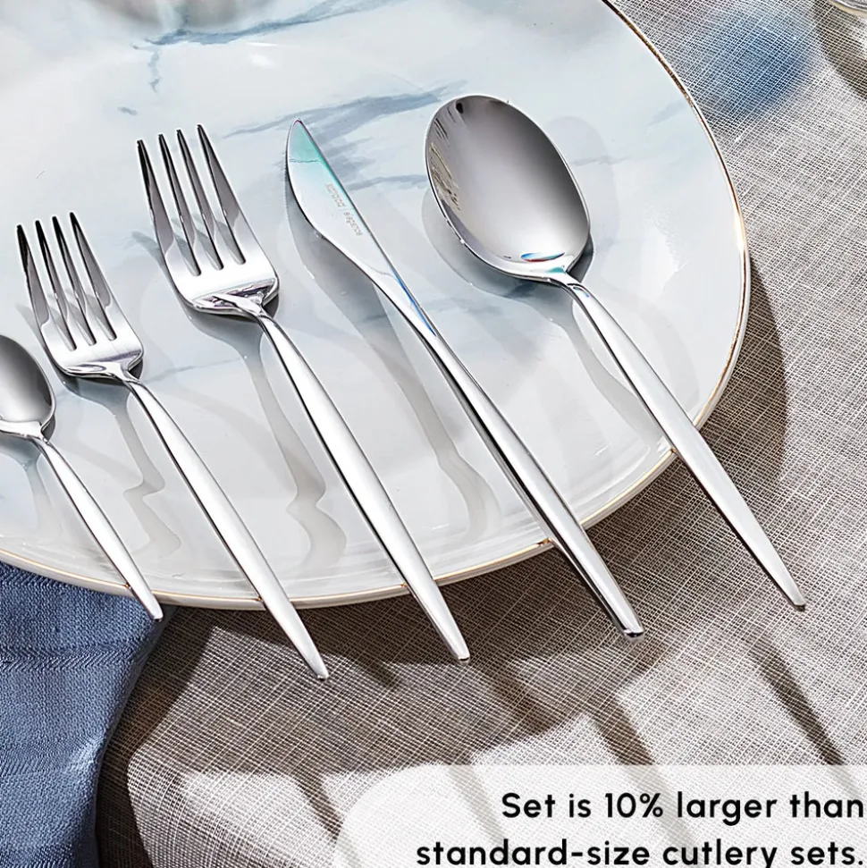 In den 60 Teilen des Sets ist alles enthalten, was Sie für ein opulentes Mahl an Tafelbesteck benötigen. Esslöffel für die Suppe, Messer und Gabeln für den Hauptgang, Dessertgabeln für den süßen Nachtisch und Teelöffel für den Kaffee zum Abschluss des Menüs. Damit können Sie 12 Personen rund herum kulinarisch verwöhnen.