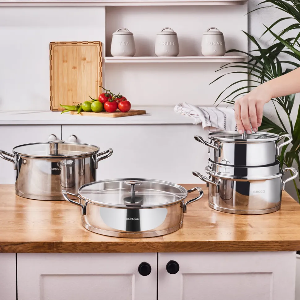 Karaca Vapor 8-teiliges Edelstahl-Topfset mit Sieb