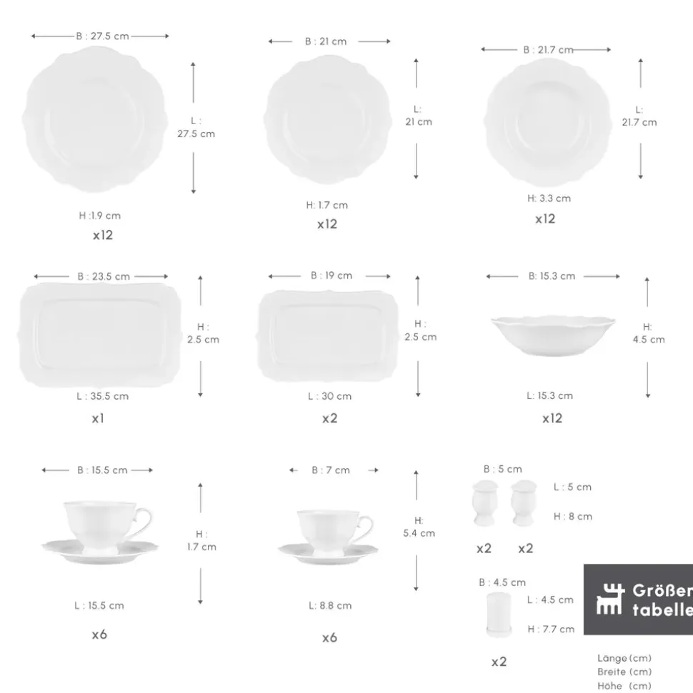 Karaca Vera White Geschirrset für 12 Personen, 84 teilig