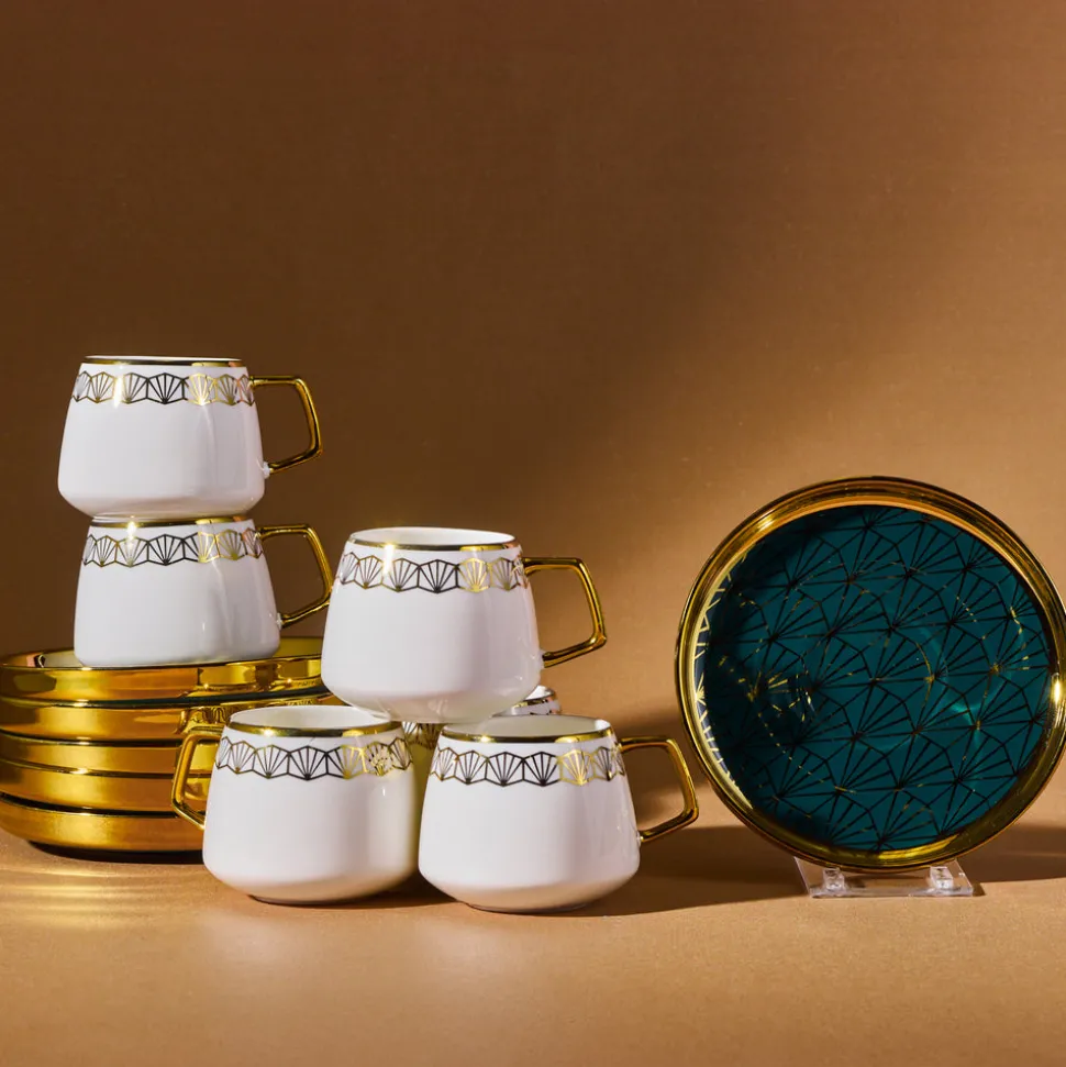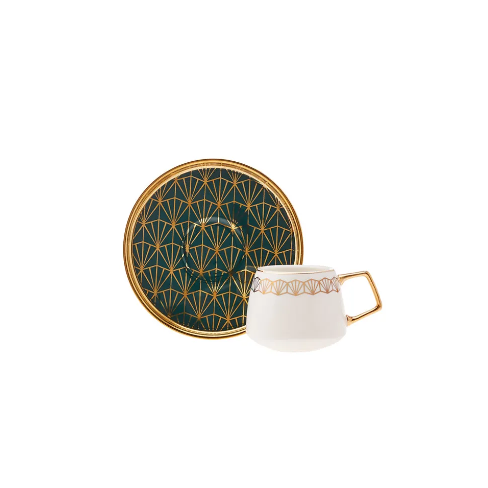 Karaca Verde 12-teiliges Porzellan Espresso Türkischer Kaffeetassen-Set für 6 Personen, 100 ml, Mehrfarbig