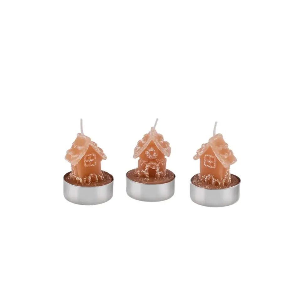 Karaca Weihnachten Lebkuchenhaus 3 Teilig Kerze, 18cmx5cmx6cm, Braun
