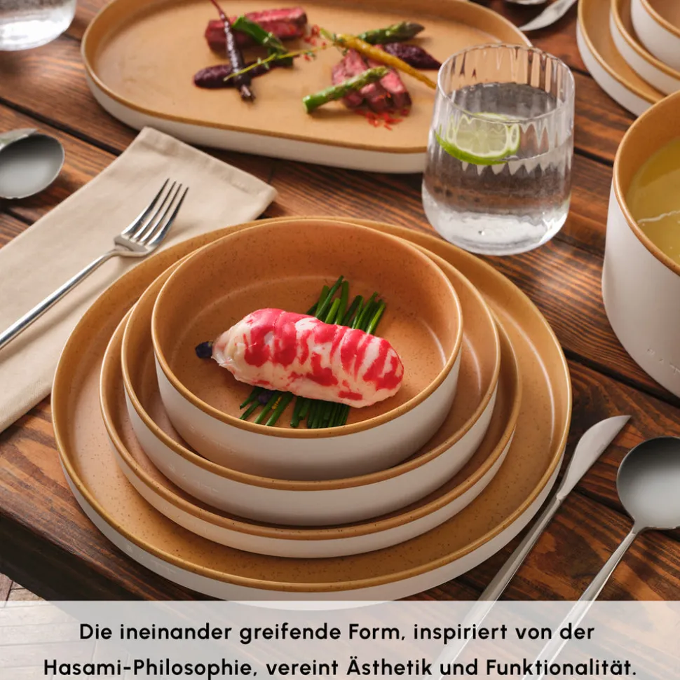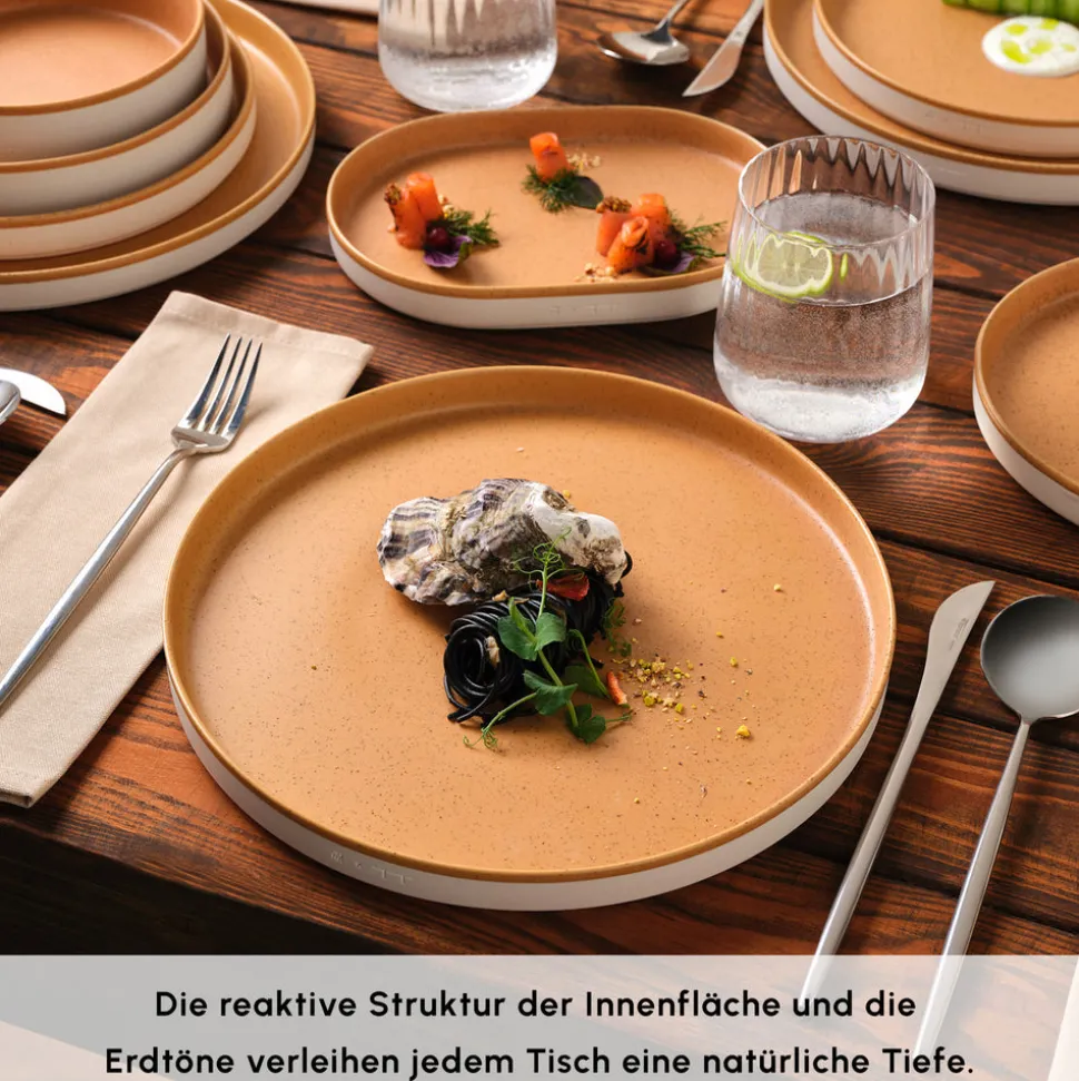 Die Karaca Earth Collection vereint Natürlichkeit und Eleganz und bringt diese harmonische Kombination auf Ihren Tisch. Mit organischen Formen, weich fließenden Kanten und einer von der Natur inspirierten Struktur geht diese Kollektion über klassische Tellerdesigns hinaus und ermöglicht moderne, minimalistische Tischarrangements.